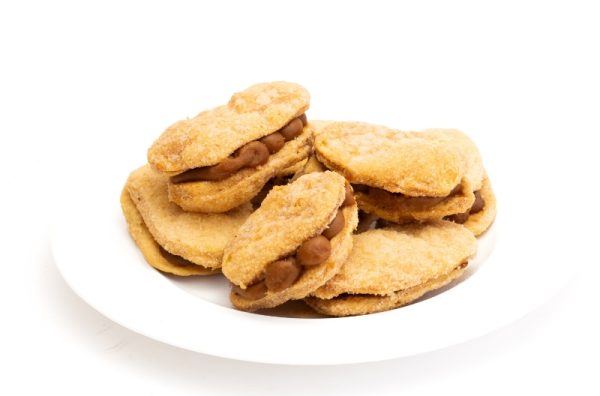 Crujientes galletas de masa quebrada y vainilla, rellenas de dulce de leche y espolvoreadas de azúcar